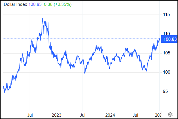 Dollar: The dollar continued its strong performance on Tuesday as doubts increased that the Federal Reserve would reduce interest rates at the end of January. The Dollar Index reached another 12-month high of 108.3, well above the moving average of 106.9. The dollar continued to pressure the euro lower, hitting 1.036.