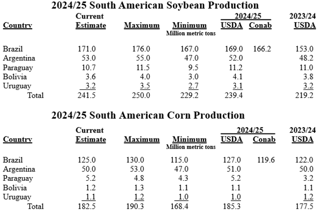 Feeder Cattle: Corn futures were higher again on Tuesday and pushing $4.60 late in the day. A cold wave in the Plains was expected to linger through the first weekend of 2025 with rain and snow possible into the Mississippi Valley. The CME Index was sharply higher at $261 to begin the week.