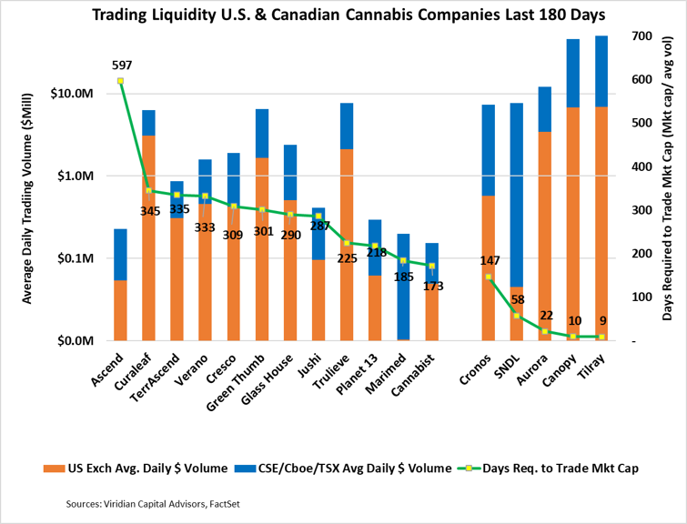 Viridian Capital Chart of the Week: Does the Lack of Trading Liquidity Inhibit Capital Inflows to Cannabis? |