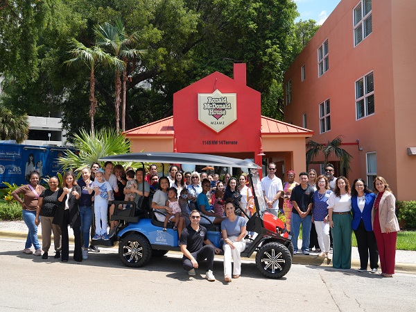 August 15, 2024 –The Ronald McDonald House Charities (RMHC) of South Florida celebrated 42 years of serving families of seriously ill children by unveiling two gifts that are sure to make those families’ stays easier: a golf cart and new pillows for every room in the House. Current patients joined representatives from the Brady Hunter Foundation and Bloomingdale’s Aventura for the big reveal. The Brady Hunter Foundation is a non-profit committed to supporting those in need through strategic community partnerships. The new golf cart will help families navigate the Jackson Memorial Hospital campus..