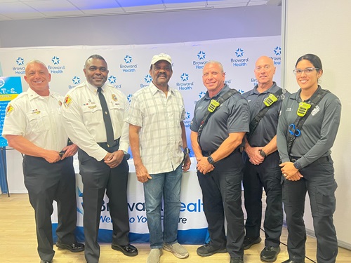 On the morning of Sept. 10, 2025, while preparing to board a flight, Alfred suddenly became disoriented and agitated. His wife noticed facial changes and immediately called 911, Broward Sheriff’s Office Rescue 10 responded and quickly recognized the signs of a stroke.