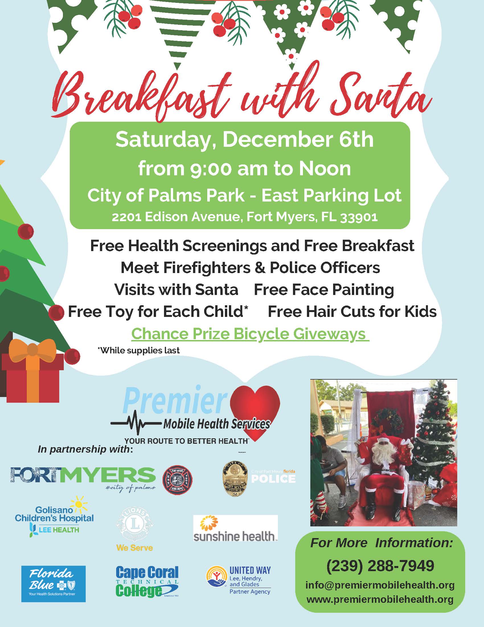 October 20, 2025 – Premier Mobile Health Services will host its seventh annual Breakfast with Santa on Saturday, Dec. 6 at City of Palms Park.