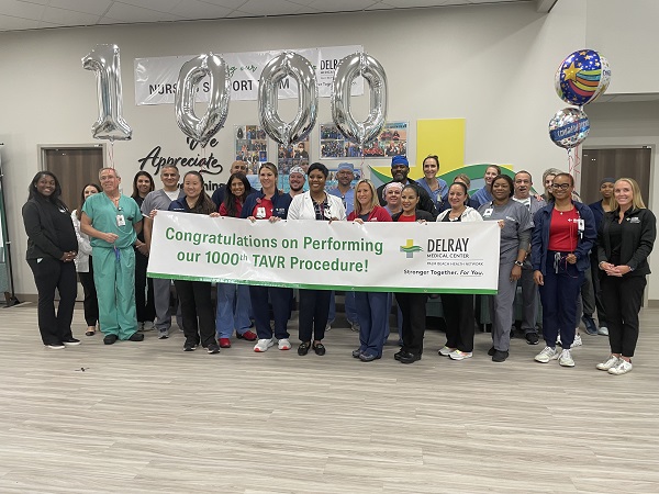 August 29, 20234- Delray Medical Center completes its 1000th Transcatheter Aortic Valve replacement (TAVR) procedure. TAVR is a minimally invasive treatment option for patients with severe aortic stenosis. The procedure may be especially beneficial for patients who are not suitable candidates for traditional open-heart surgery. Delray Medical Center first offered TAVR in 2015.
