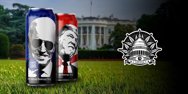FOR AMERICANS WHO ENJOY CANNABIS AND ROLL THEIR EYES AT U.S. POLITICS, CAPITOL 9 PROUDLY PRESENTS POLITICALLY THEMED THC SELTZERS TO POKE FUN AT PRESIDENTIAL “CAN”-DIDATES