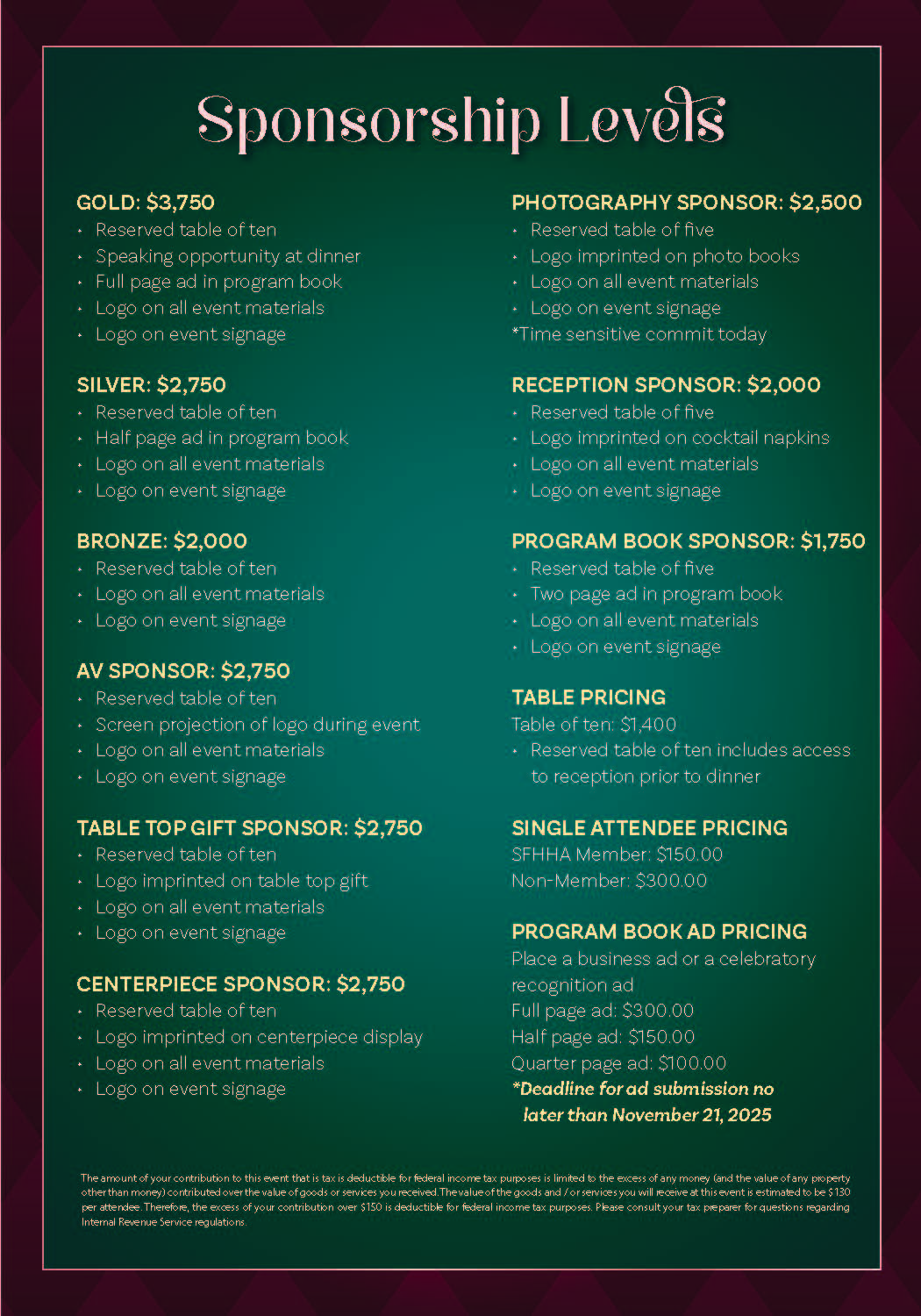 CLICK ON IMAGE BELOW FOR MORE INFORMATION ABOUT SPONORSHIP AND REGISTRATION TO THE SFHHA ANNUAL MEETING |