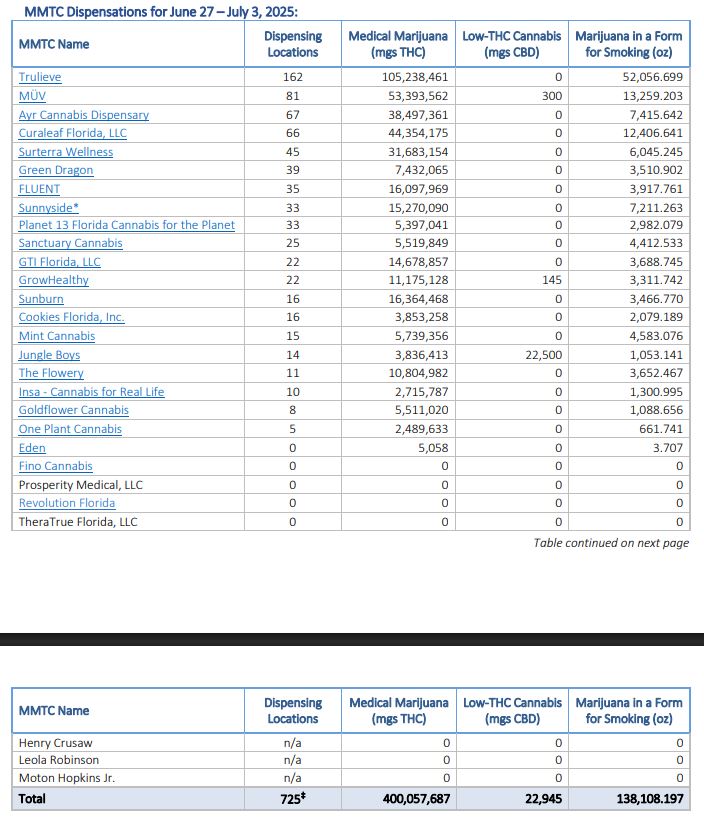 -Amount of Marijuana in a Form for Smoking (oz) 138,108.197 Approved Dispensing Locations: 725 Added Last Week: 1 JUNGLE BOYS - ST. PETERSBURG |