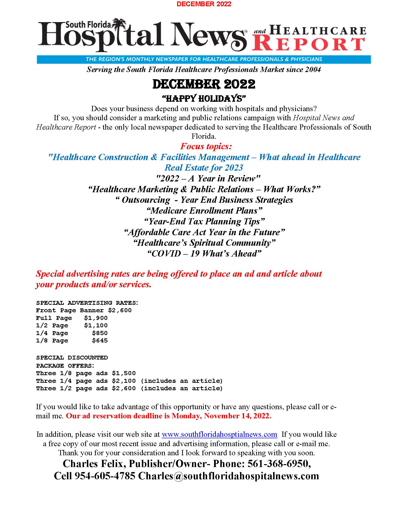 CLICK HERE Interview with Ben Rodriguez Sr. VP and CEO Jackson South Medical Center by Charles Felix Publisher/Owner South Florida Hospital News & Healthcare Report CLICK HERE
