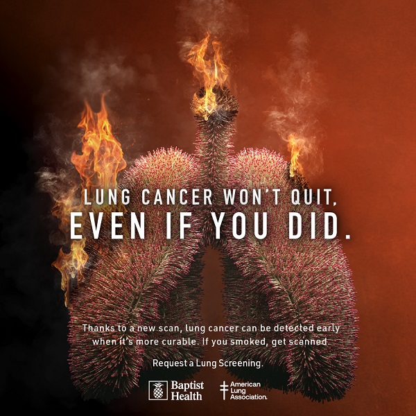 While cancer screenings during the pandemic declined nationally, lung cancer screenings at Baptist Health facilities over the past year have increased according to campaign data gathered by Baptist Health. The low-dose CT scan lung cancer screening can detect lung cancer in the early stages, before symptoms arise, when the disease is more curable. In just one year, this campaign has made a lifesaving impact at Baptist Health with a 62% increase year-over-year of lung cancer screenings and a 29% increase over pre-COVID numbers.