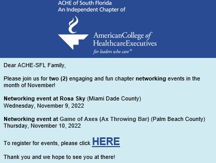 SOUTH FLORIDA HOSPTIAL NEWS AND HEALTHCARE REPORT'S NEXT NETWORKING MEETING IN PERSON IN MIAMI