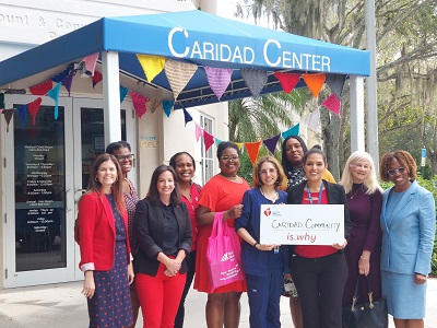 Representatives from the American Heart Association and Mount Sinai New York donate blood pressure cuffs to Caridad Center