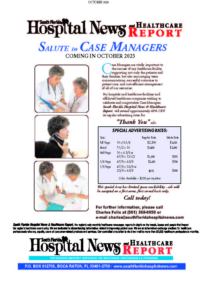 South Florida Hospital News and Healthcare Report a Healthcare Media Company Charles Felix Publisher/ Owner READ THE AUGUST 2023 PUBLICATION |