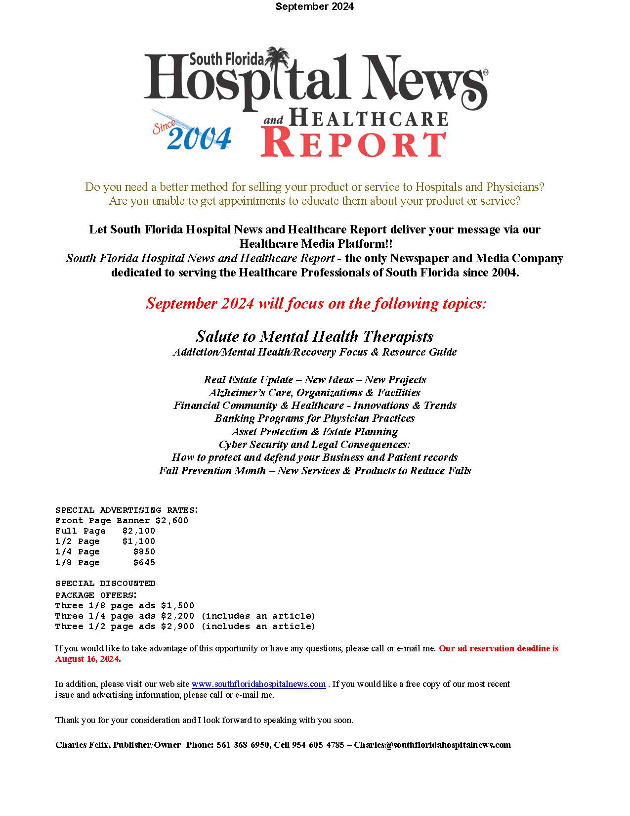South Florida Hospital News and Healthcare Report a Healthcare Media Company Charles Felix