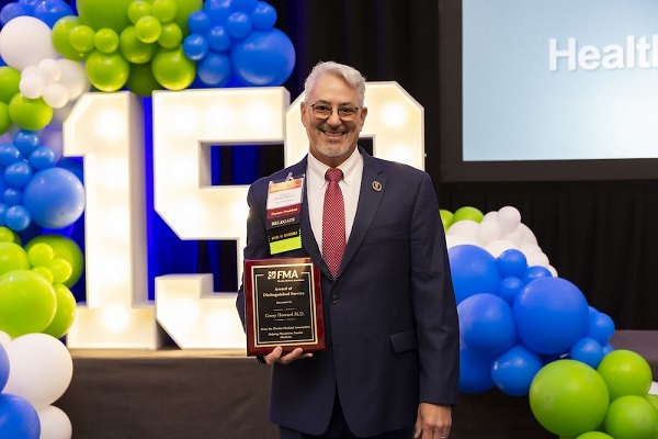 August 22, 2024 – FMA Past President Corey Howard, MD, FACP, of Naples, Fla., has been advocating for medicine since he was a resident in the early ‘90s. More than 30 years later, the FMA honored Dr. Howard for his steadfast leadership by presenting him with the 2024 Award of Distinguished Service at Annual Meeting in Orlando on Saturday, Aug. 3. It is the association’s highest award.