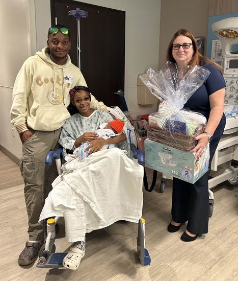 Local troops gift new mom with Girl Scouts-inspired gift basket for first baby girl born at Broward Health Coral Springs on Halloween