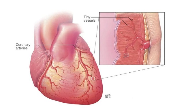 Microvascular disease is a condition in which tiny blood vessels in the heart are not working properly, resulting in reduced blood flow to the heart. The resulting chest pains, or angina, can be debilitating, limiting a person’s ability to exercise, do household chores or even walk to the mailbox. About 40% of patients receiving a diagnostic coronary angiogram for chest pain do not have blocked arteries that also can cause angina. However, up to 66% of these patients do have coronary microvascular disease, which is more common in women overall and found in people with conditions such as diabetes, high blood pressure and obesity.