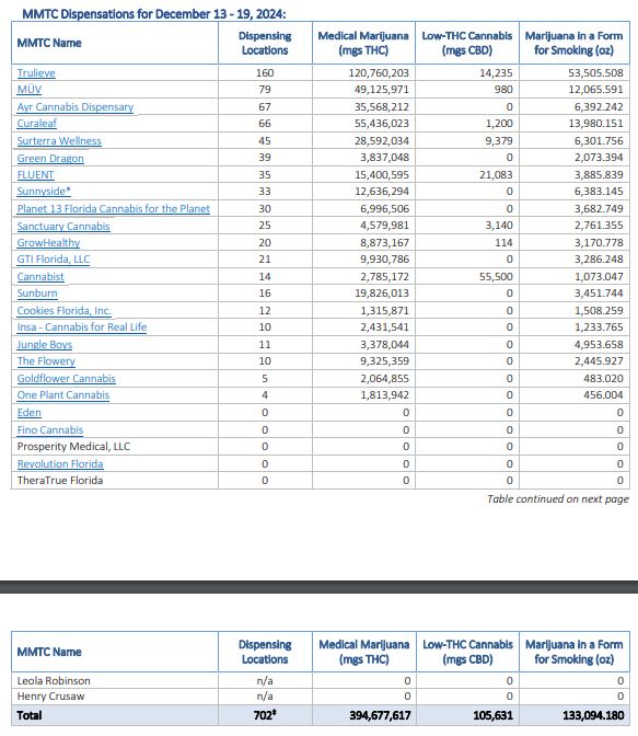 -Amount of Marijuana in a Form for Smoking (oz) 133,094.180 Approved Dispensing Locations: 702 Added Last Week: 1 PLANET 13 - PANAMA CITY |