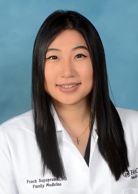 Board-certified by the American Board of Family Medicine, Dr. Peach Supupramai is a primary care physician who, prior to joining Holy Cross Health, was chief resident at Broward Health Medical Center where she completed her family medicine residency. She is a member of the American College of Osteopathic Family Physicians, American Academy of Family Physicians, American Osteopathic Association and Florida Osteopathic Medical Association.